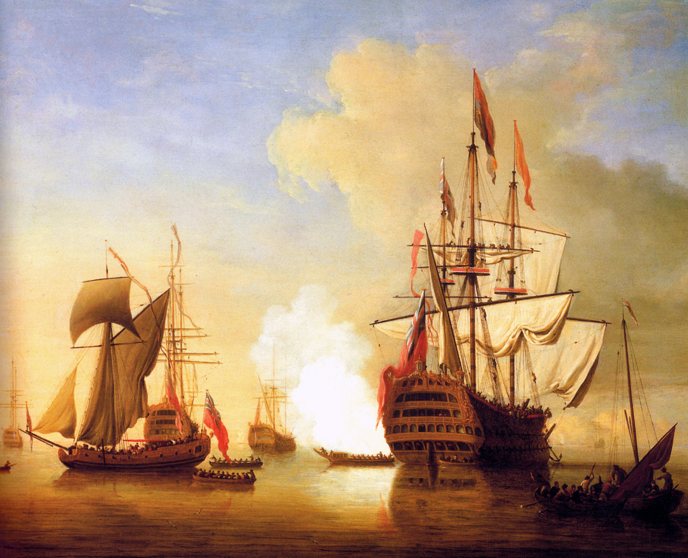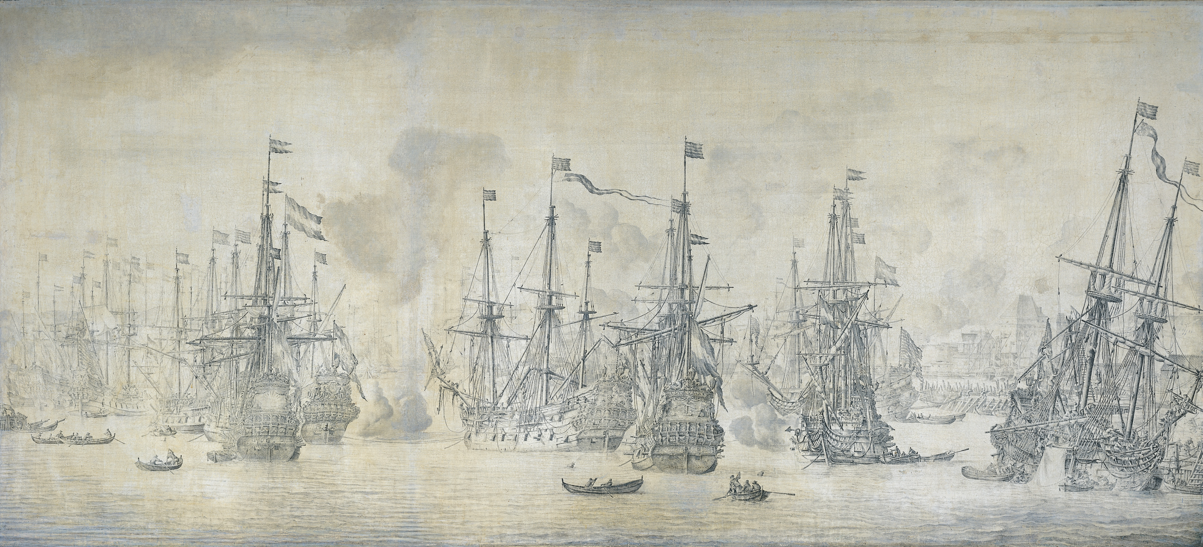 Unsuccessful English attack on the VOC fleet at Bergen, 12 August 1665, by Willem van de Velde the Elder, 1669